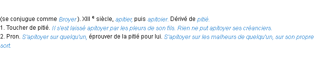 Signification éditée en 1986 pour le terme « apitoyer » par l’Académie Française.