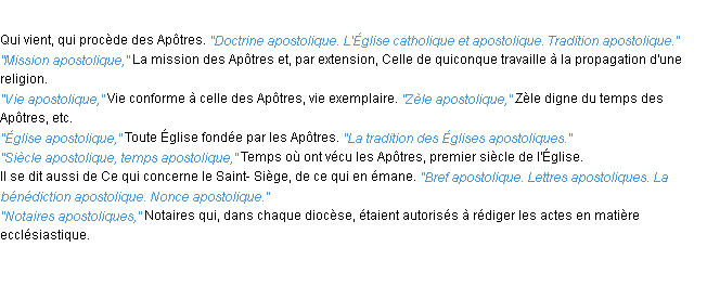 Ancienne définition du mot « apostolique » par l’Académie Française (édition de 1835).