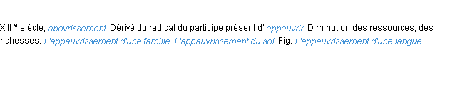Signification du terme « appauvrissement », parution de 1932, dictionnaire académique Français.