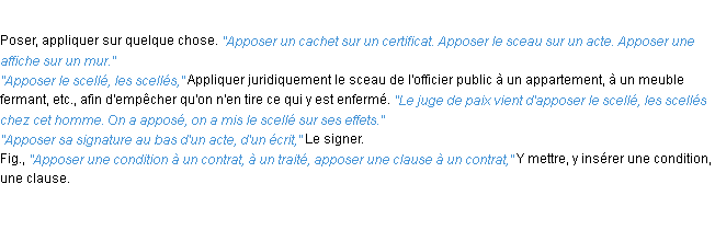 Signification du terme « apposer », parution de 1932, dictionnaire académique Français.