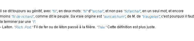 Définition de Mr Jean-François Féraud (édition de 1788) pour le terme « archal ».Merci à Gautier et Emeline pour la numérisation du mot archal.