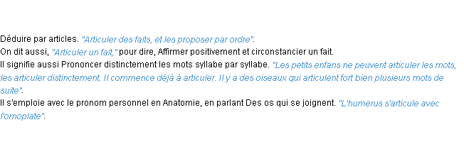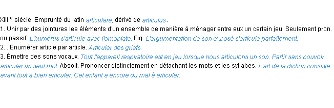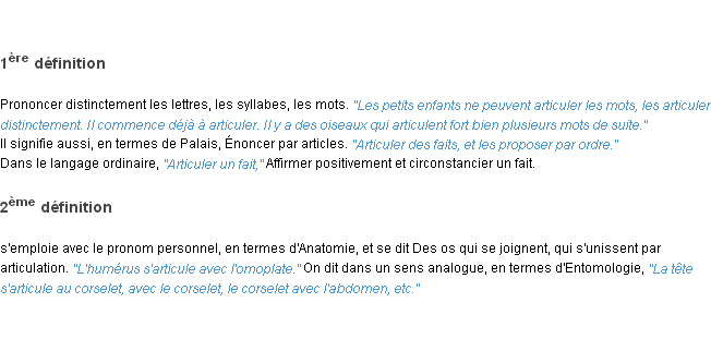 Définition de l’Académie Française (édition de 1932) pour le mot « articuler ».