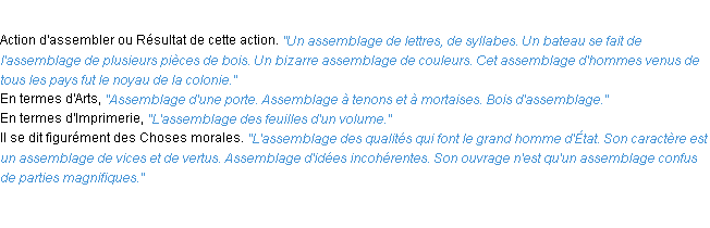 Signification du terme « assemblage », parution de 1932, dictionnaire académique Français.