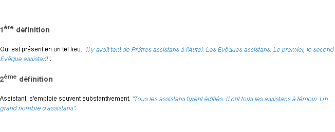 Ancienne signification éditée par l’Académie Française, année 1798.Merci à Gilberte et Philibert pour la numérisation du mot assistant.