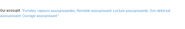 Définition développée dans dictionnaire d’Emile Littré (ancienne édition de 1876).Merci à Lunete et Hilaire pour la numérisation du mot assoupissant.