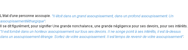 Signification du terme « assoupissement », parution de 1932, dictionnaire académique Français.