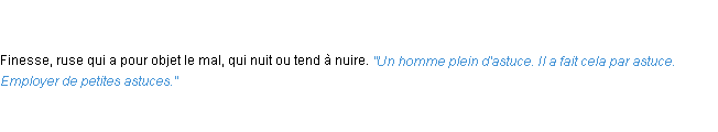 Ancienne signification éditée par l’Académie Française, année 1798.Merci à Dominique et Hugues pour la numérisation du mot astuce.