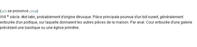 Définition développée dans dictionnaire d’Emile Littré (ancienne édition de 1876).Merci à Joël et Lucie pour la numérisation du mot atrium.