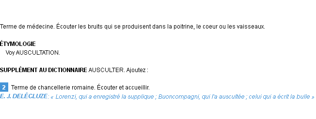 Définition développée dans dictionnaire d’Emile Littré (ancienne édition de 1876).Merci à Firmin et Aristide pour la numérisation du mot ausculter.