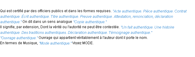 Définition du mot « authentique » par l’Académie Française (édition de 1932).