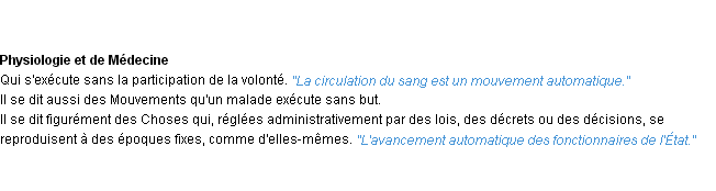 Définition de l’équipe de la-definition.fr (édition de 2009) pour le mot « automatique ».Merci à Sylvianne et Héloïse pour la numérisation du mot automatique.