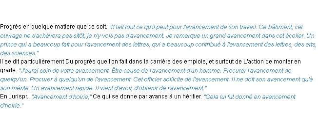 Ancienne définition du mot « avancement » par l’Académie Française (édition de 1835).