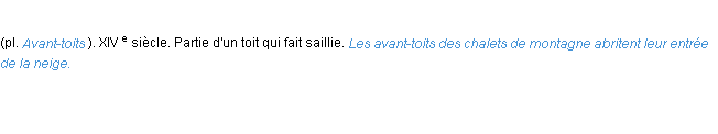 Signification du terme « avant-toit », parution de 1932, dictionnaire académique Français.