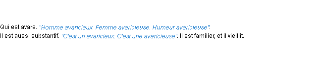 Définition du mot « avaricieux » par l’Académie Française (édition de 1986).