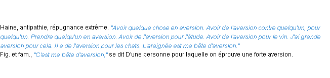 Signification éditée en 1932 pour le terme « aversion » par l’Académie Française.