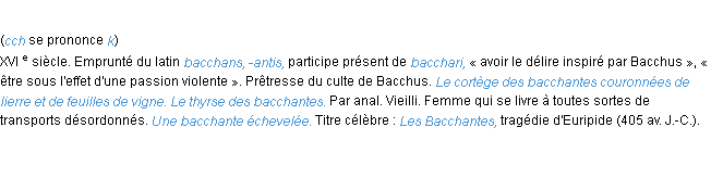 Définition du mot « bacchante » par l’Académie Française (édition de 1986).