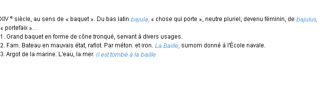 Signification éditée en 1986 pour le terme « baille » par l’Académie Française.