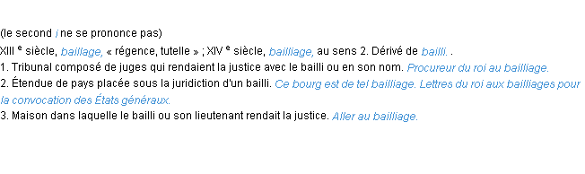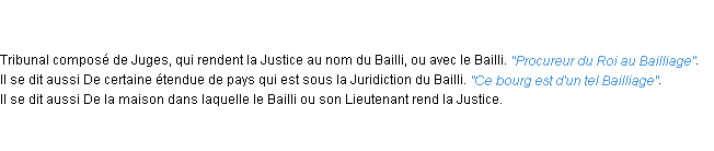 Ancienne signification du terme « bailliage », parution de 1798, dictionnaire académique Français.Merci à Lionel et Céline pour la numérisation du mot bailliage.