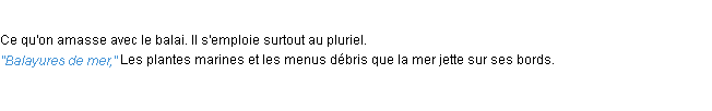 Définition « balayure » du dictionnaire académique Français, parution de l’année 1986.