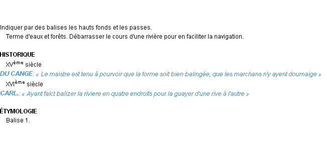 Définition développée dans dictionnaire d’Emile Littré (ancienne édition de 1876).Merci à Doriane et Margot pour la numérisation du mot baliser.