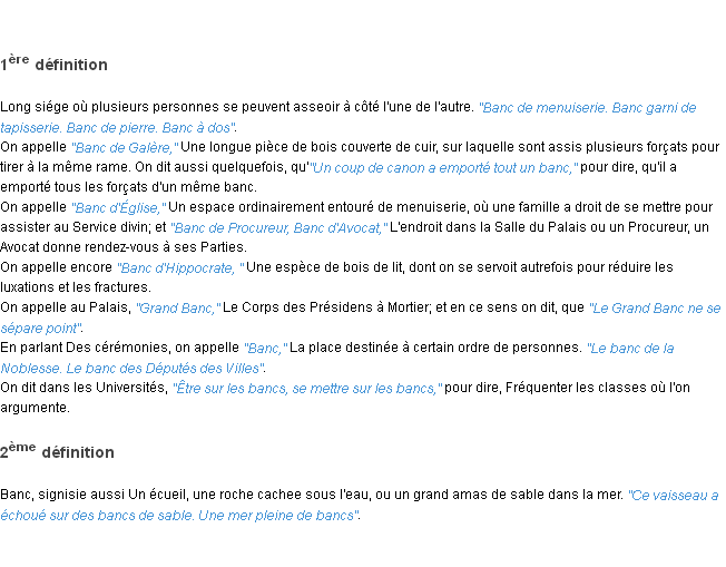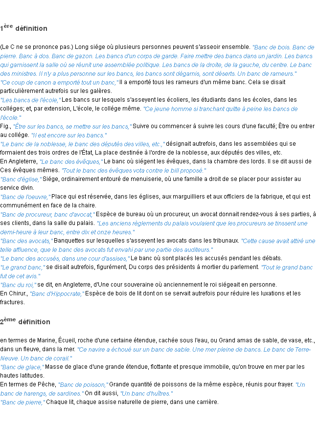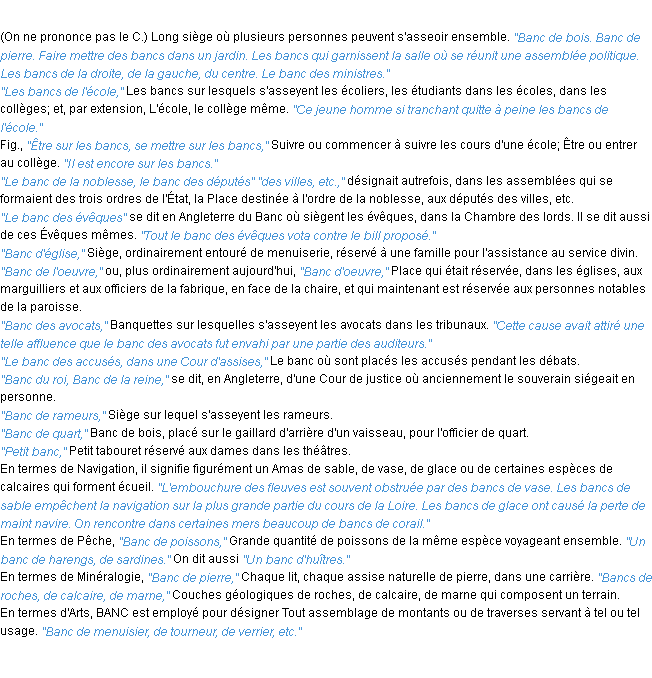 Définition du mot « banc » par l’Académie Française (édition de 1932).