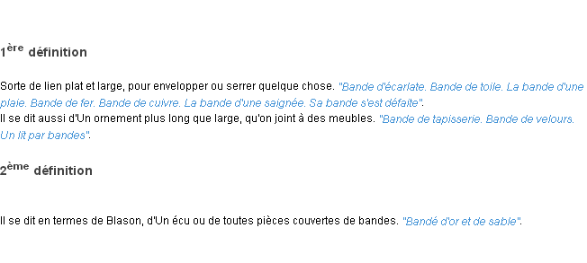 Ancienne définition de l’Académie Française (édition de 1835) pour le mot « bande ».