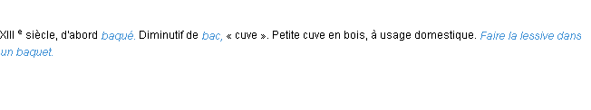 Ancienne définition « baquet » du dictionnaire académique Français, parution de l’année 1835.