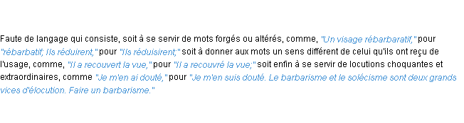 Signification éditée en 1932 pour le terme « barbarisme » par l’Académie Française.