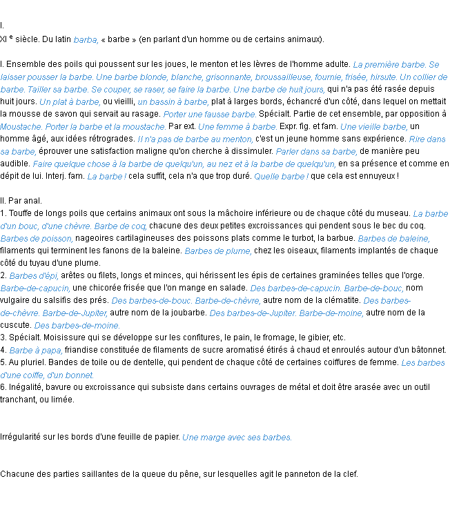 Définition de l’Académie Française (édition de 1932) pour le mot « barbe ».