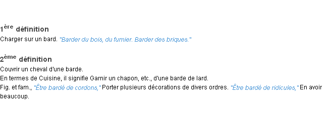 Définition du mot « barder » par l’Académie Française (édition de 1932).