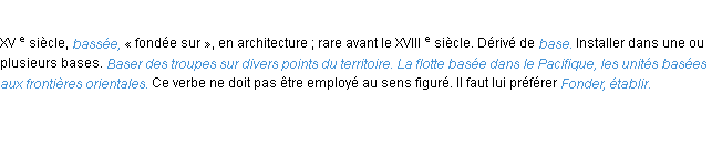 Signification du terme « baser », parution de 1986, dictionnaire académique Français.