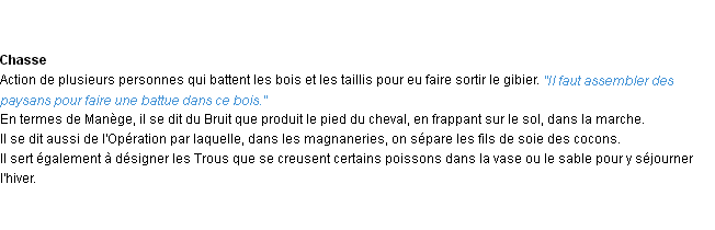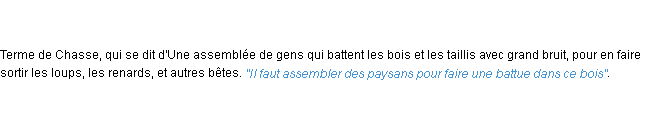 Signification éditée en 1932 pour le terme « battue » par l’Académie Française.
