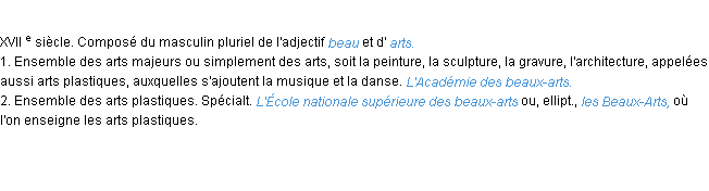 Définition académique pour le terme « beaux-arts » (parue en 1986).Merci à Gaspard et Marc pour la numérisation du mot beaux-arts.