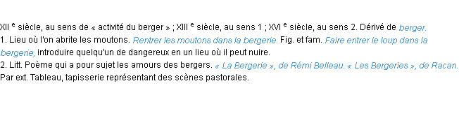 Signification du terme « bergerie », parution de 1932, dictionnaire académique Français.