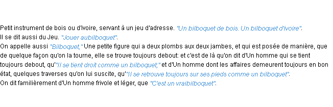 Définition du mot « bilboquet » par l’Académie Française (édition de 1932).