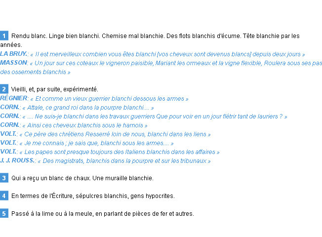 Usage du mot: blanchi