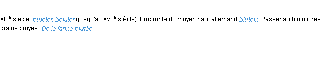 Ancienne définition du mot « bluter » par l’Académie Française (édition de 1798).Merci à Arnaude et Lunete pour la numérisation du mot bluter.
