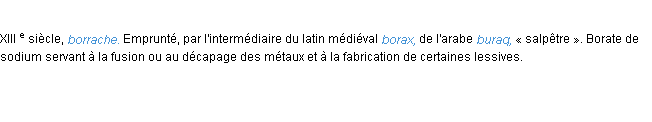 Ancienne définition « borax » du dictionnaire académique Français, parution de l’année 1835.