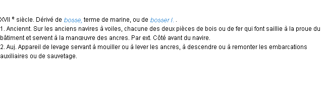 Ancienne définition académique pour le terme « bossoir » (parue en 1835).