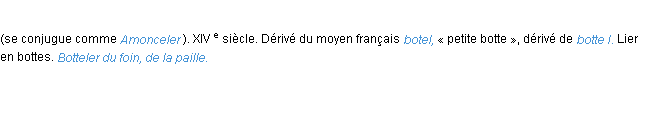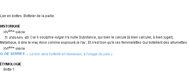 Définition de « botteler » issue du Littré (Auteur Emile Littré, édité en 1876).- Autres Recherches