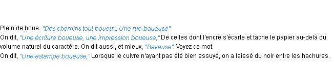 Signification du terme « boueux », parution de 1932, dictionnaire académique Français.