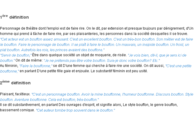 Définition du mot « bouffon » par l’Académie Française (édition de 1932).