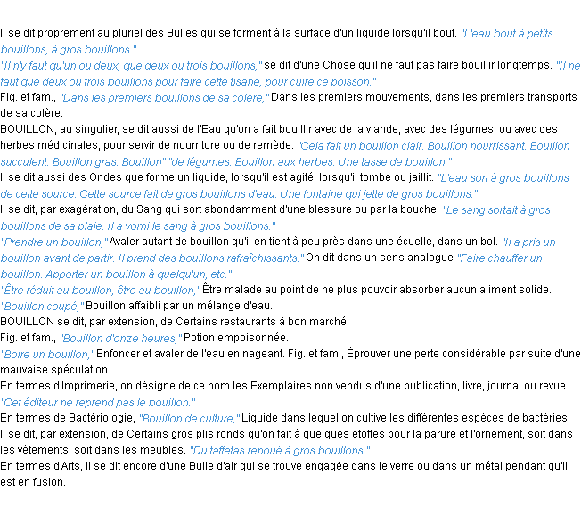 Définition du mot « bouillon » par l’Académie Française (édition de 1932).