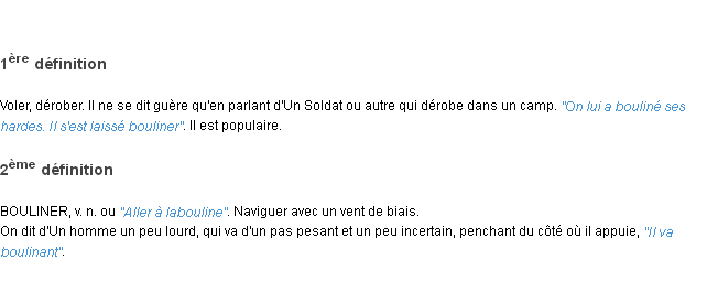 Définition « bouliner » du dictionnaire académique Français, parution de l’année 1986.