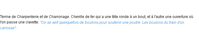 Ancienne signification éditée en 1835 pour le terme « boulon » par l’Académie Française.