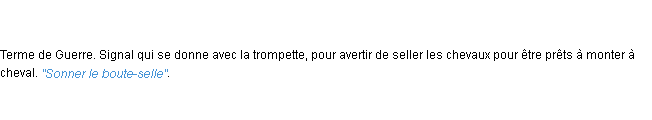 Signification développée en 1876 par Mr Littré (dictionnaire dit d’Emile Littré).Merci à Lionel et Virginie pour la numérisation du mot boute-selle.