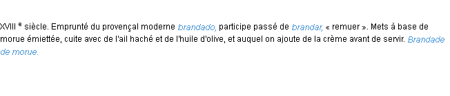 Signification éditée en 1876 pour le terme « brandade » par Emile Littré.- Autres Recherches