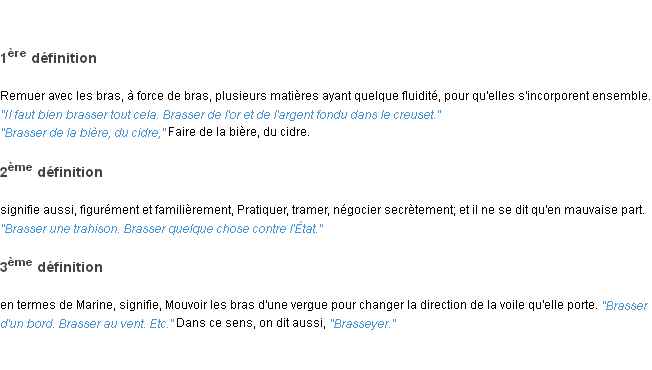 Ancienne définition « brasser » du dictionnaire académique Français, parution de l’année 1835.