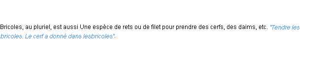 Ancienne définition de l’Académie Française (édition de 17962) pour le mot « bricoles ».