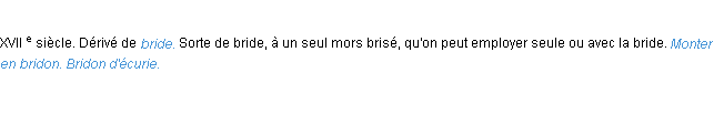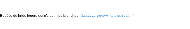 Ancienne signification du terme « bridon », parution de 1798, dictionnaire académique Français.- Autres Recherches